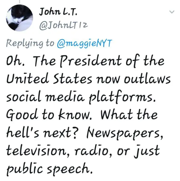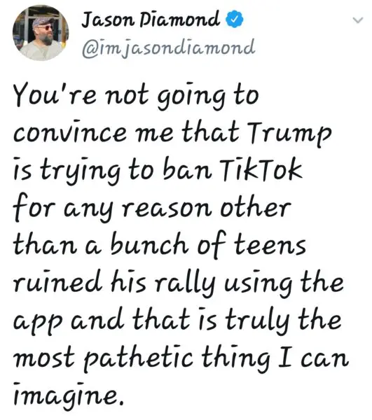 “As far as TikTok is concerned, we’re banning them from the United States. I have that authority…It’s going to be signed tomorrow.”