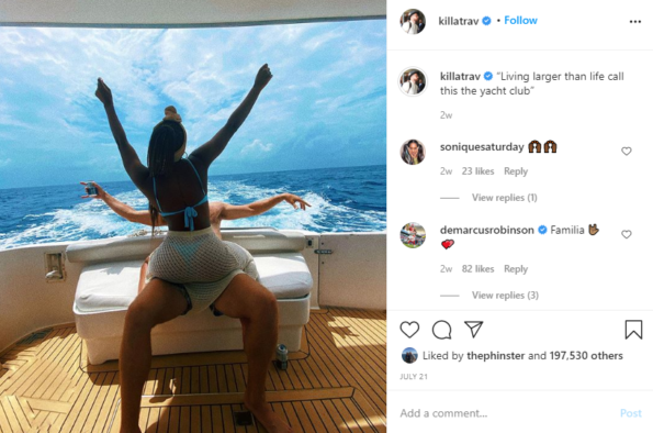 Ironically, a picture of Travis Kelce and Kayla cozied up on a yacht is the last photo he posted on his Instagram page. It was shared on July 21, just two weeks ago.
