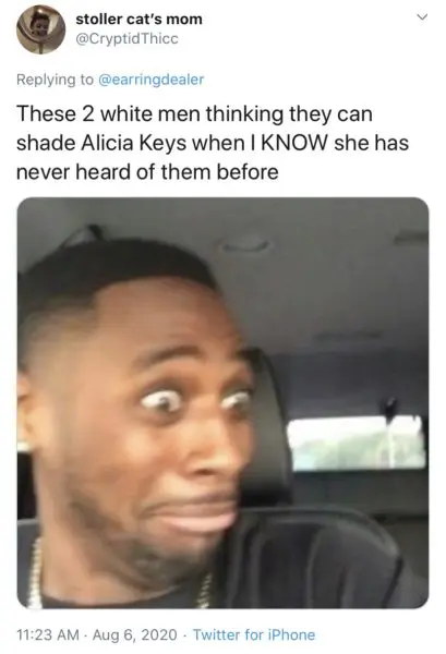 So Alicia Keys is trending because of some white youtubers and social media personalities trying to dictate to her the rules of putting out a make up line? pic.twitter.com/GZ482dj2dY