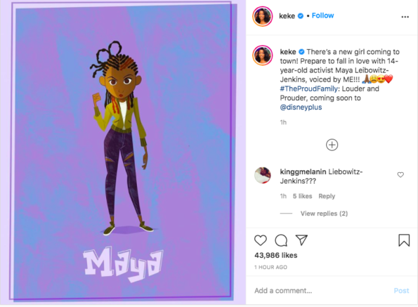 “There’s a new girl coming to town! Prepare to fall in love with 14-year-old activist Maya Leibowitz-Jenkins, voiced by ME!!! #TheProudFamily: Louder and Prouder, coming soon to @disneyplus”