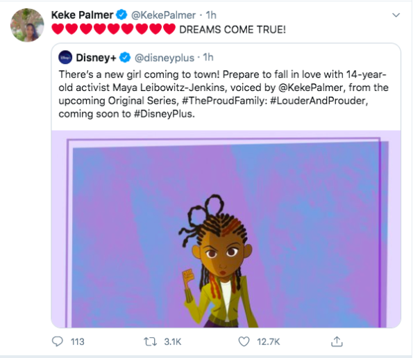 Keke Palmer also responded to Disney+ announcing the news on twitter and said it’s her dream come true.