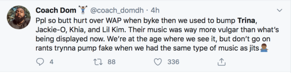“People think that WAP is so nasty and freaky except people from Florida …..Trina,Khia,Jackie O used to go in in”