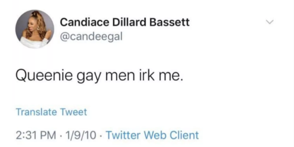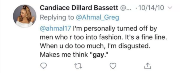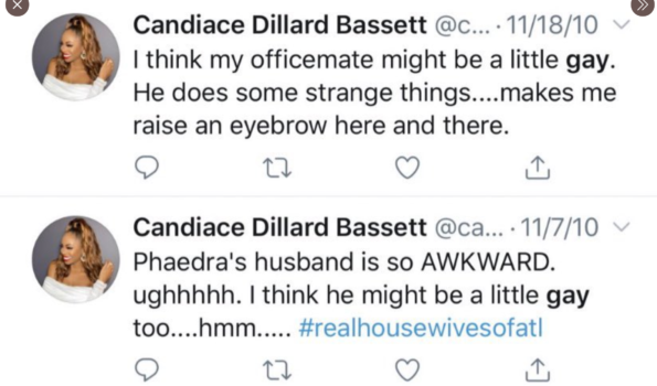 Earlier in the week, fans discovered some of Candiace Dillard’s tweets from 9 and 10 years ago, where she is seen saying some disparaging comments about gay people, even claiming that Phaedra Parks’s ex husband Apollo Nida is “gay”.