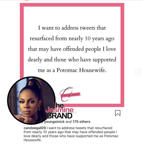 Real Housewives of Potomac star Candiace Dillard has issued an apology to the LGBTQ+ community after fans discovered her old tweets that featured comments that criticized the LGBTQ community.