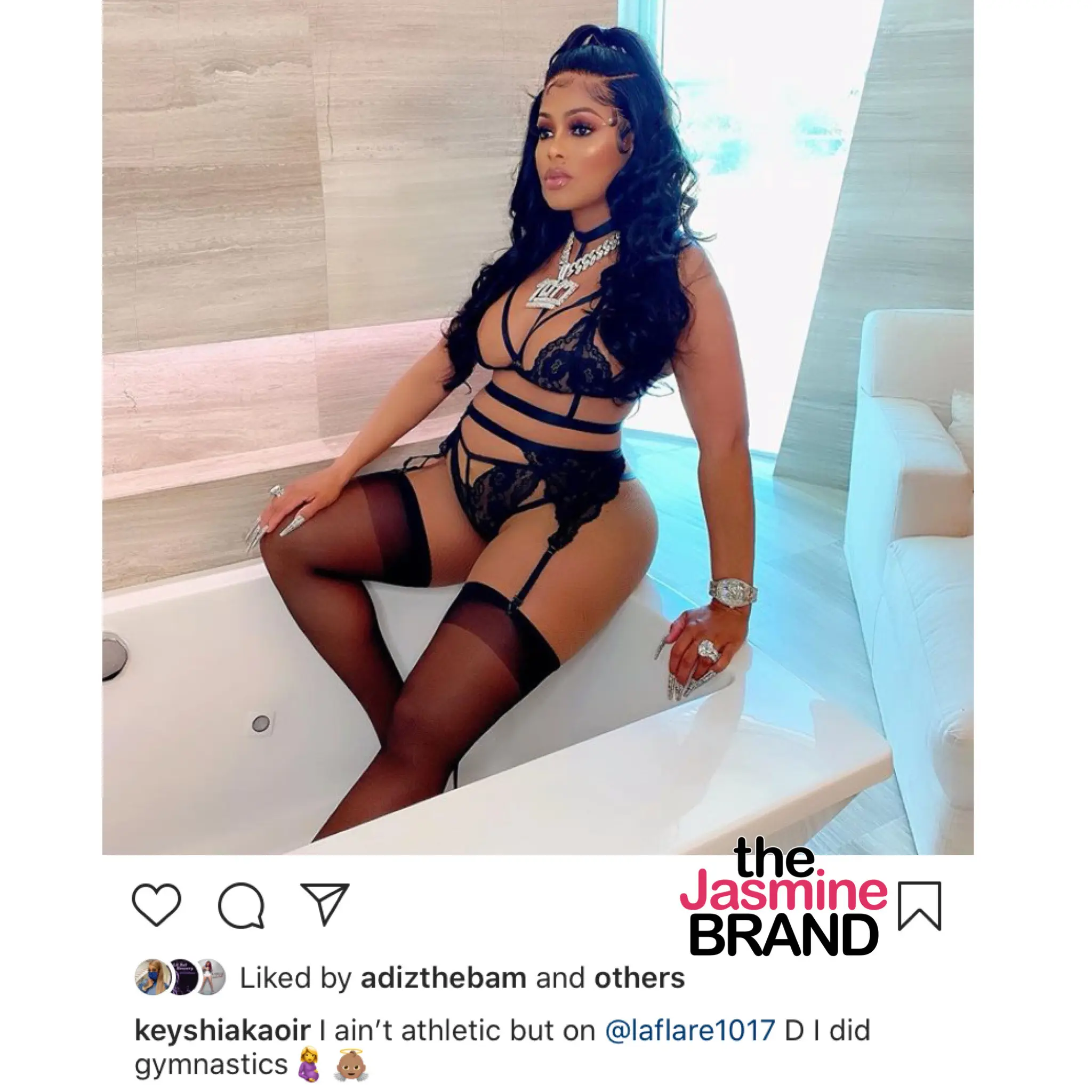 Meanwhile, her husband Gucci Mane excitedly announced their pregnancy news, its the same photo but Keyshia is posing in a different way,