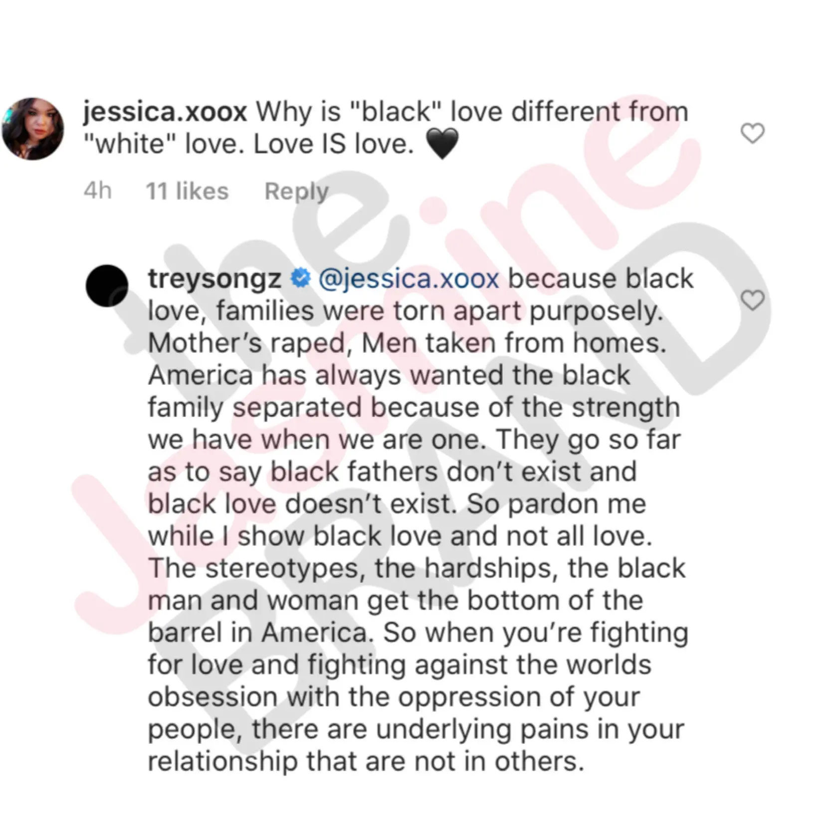 Singer Trey Songz reacted to a fan who took issue with him using the phrase “black love.”