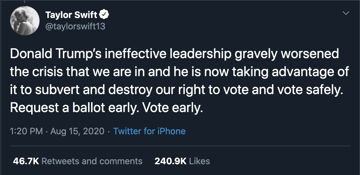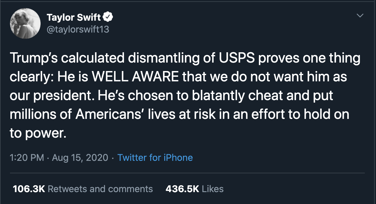 What are your thoughts about Taylor Swift saying that Donald Trump has calculated the dismantling of USPS? Tell us your thoughts in the comments below.