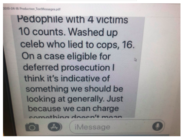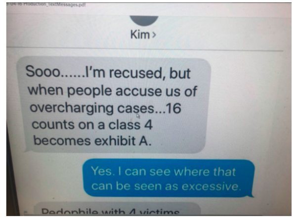 “Sooo……I’m recused, but when people accuse us of overcharging cases…16 counts on a class 4 becomes exhibit A. Pedophile with 4 victims 10 counts. Washed up celeb who lied to cops, 16. On a case eligible for deferred prosecution I think it’s indicative of something we should be looking at generally. Just because we can charge something doesn’t mean we should.”