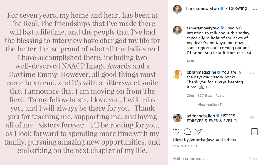 This summer, Tamera Mowry-Housley, announced earlier this summer that she left the show after six seasons.