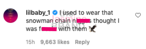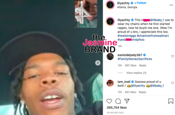 “This n***a @lilbaby_1 use to wear my chains when he first started rappin, now he buyin me one. Wow I’m proud of u bro, I appreciate this too.”