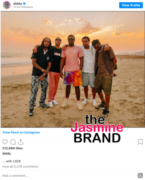 Diddy Posts Up With Quavo, Swizz Beatz, Nas & Travis Scott At The Beach [PHOTOS]