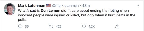 “But what they can do, and I think maybe Joe Biden might be afraid to do it, I’m not sure, maybe he won’t, maybe he is. He’s gotta address it, he’s gotta come out and talk about it, he’s gotta do a speech like Barack Obama did about race. He’s gotta come out and tell people that he is going to deal with the issue of police reform in this country. And that what’s happening now is happening on Donald Trump’s watch, and when he is the President, Kamala Harris is the Vice President, then they will take care of this problem, but guess what. The Rioting has to stop.”