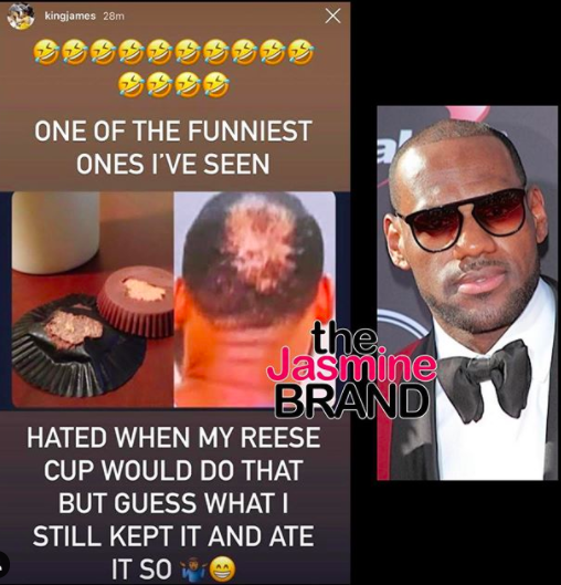 LeBron James reposted a meme about his hair on his Instagram stories Monday (Aug.24). The photo is a side-by-side comparison of the back view of what appears to be LeBron James’ scalp next to a Reese’s Peanut Butter Cup without a portion of the chocolate covering. LeBron said: