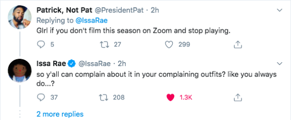 Another fan told Issa Rae she should start filming now and just shoot everything on Zoom. However, it doesn’t look like Issa will be taking that idea into consideration. She replied to the suggestion and said,