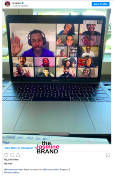 Even though Issa Rae won’t be virtually filming her show, she did share an image this past May of a virtual writer’s room which included the show’s writers and showrunner, Prentice Penny. with the caption,