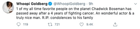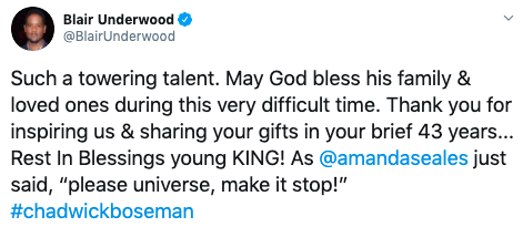 “It is with immeasurable grief that we confirm the passing of Chadwick Boseman.
