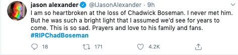 Our thoughts and prayers are with Chadwick Boseman’s family and loved ones.