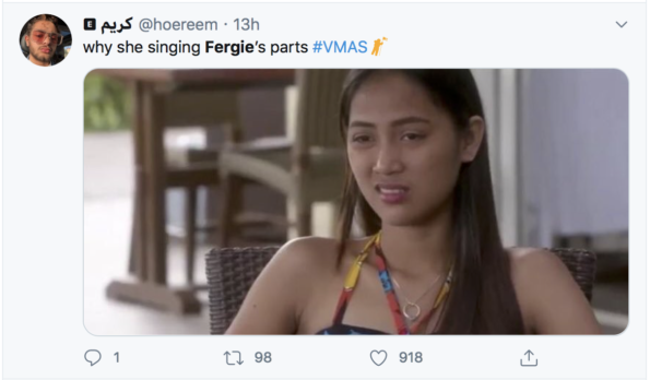 Fergie at home right now #VMAs pic.twitter.com/wwhmT3ISsD