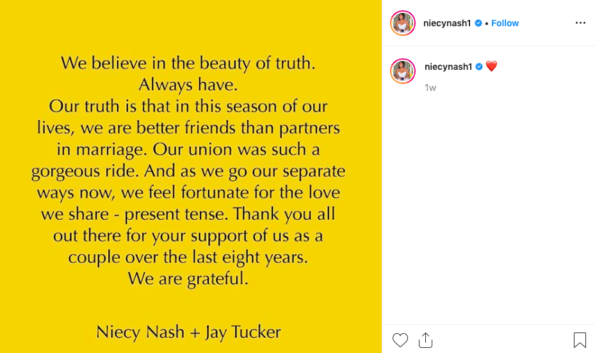 Niecy Nash filed for divorce from her now ex-husband, Jay Tucker, in December. She announced their separation on Instagram.
