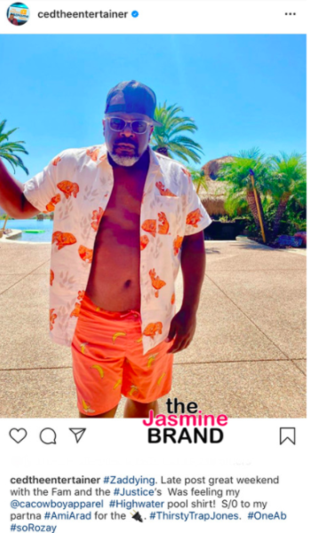 “#Zaddying. Late post great weekend with the Fam and the #Justice’s Was feeling my @cacowboyapparel #Highwater pool shirt! S/0 to my partna #AmiArad for the ?. #ThirstyTrapJones. #OneAb #soRozay”
