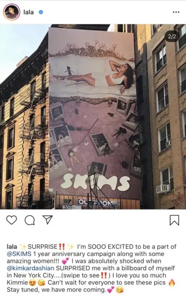 LaLa Anthony shared the billboard that showed her wearing Kim Kardashian West’s shapewear SKIMS line, which celebrates its one-year anniversary this month.