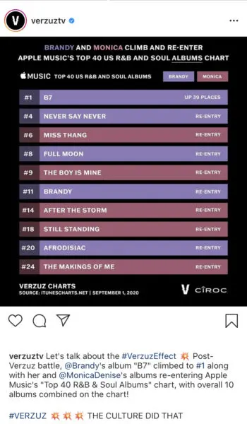 “This was a beautiful moment @monicadenise had a blast with you on @verzuztv … we riding dem charts on @applemusic too .. I see us it was an honor Thank you stars and doves for your forever support. Love y’all”