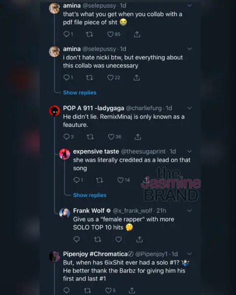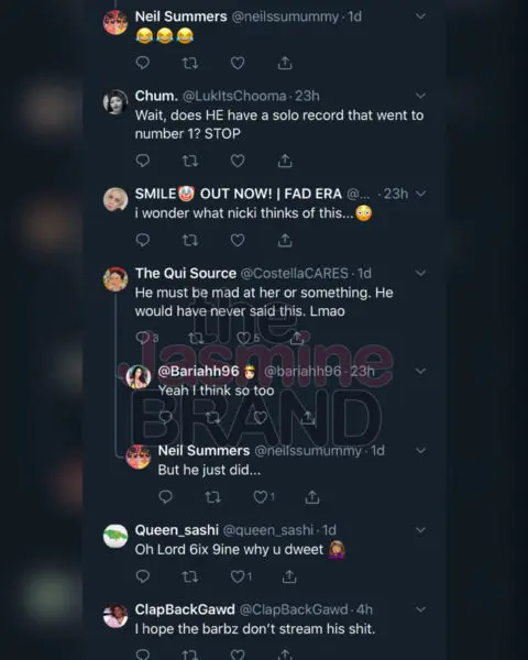 It’s safe to say Nicki Minaj’s fans bettered known as “The Barbz” are not feeling Tekashi 6ix9ine’s comments about the rap superstar. We will have to wait and see if Nicki will speak out on this matter.