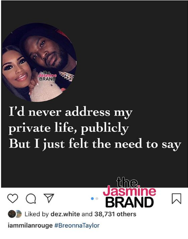 “We me and Milano decided to remain friends and build our child as separate parents … we still have mad love for each other but we both came to a understanding! -meek-