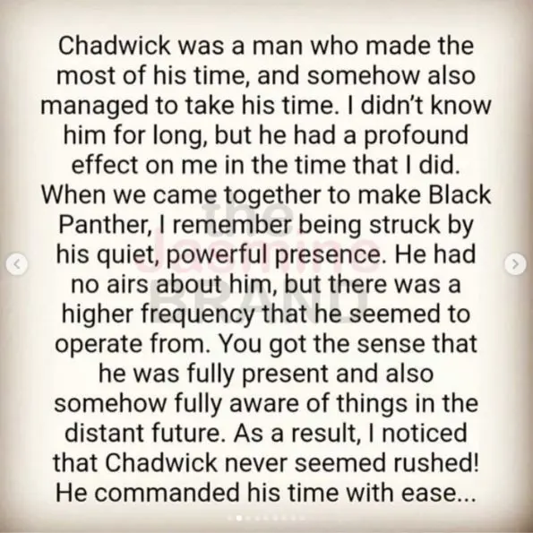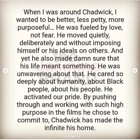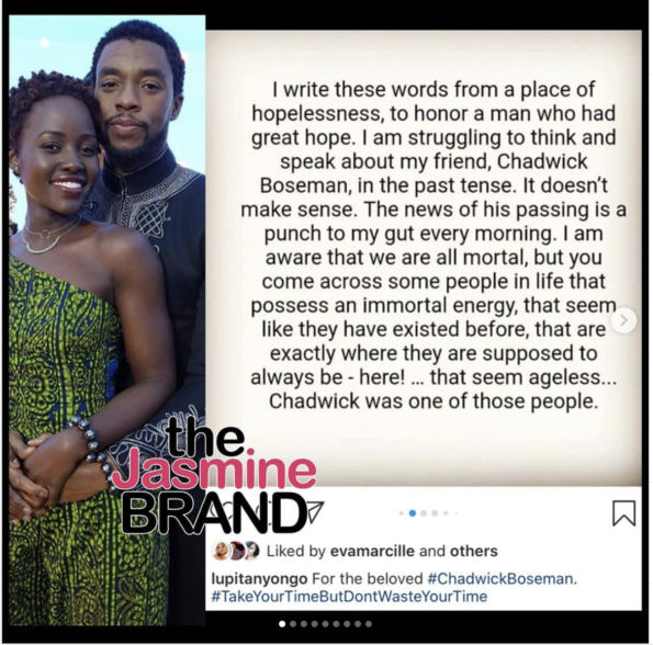 Lupita Nyong’o took to Instagram posting a series of messages on the passing of Chadwick Boseman, she began by saying,