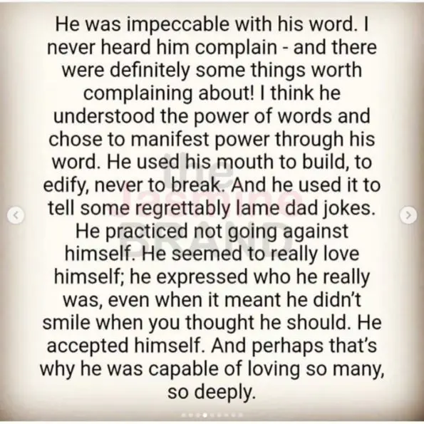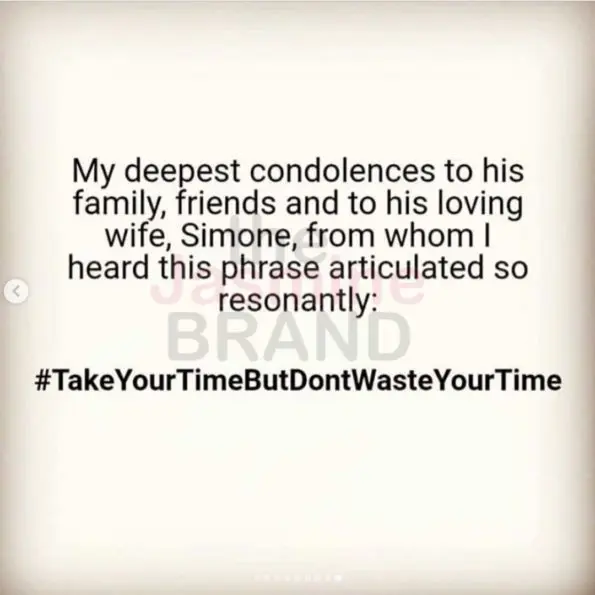 “My deepest condolences to his family, friends and to his loving wife, Simone, from whom I heard this phrase articulated so resonantly: #TakeYourTimeButDontWasteYourTime”