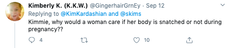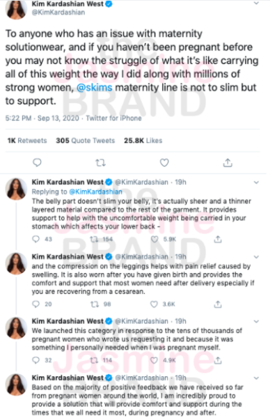 Kim ended her tweets, stating that she’s been receiving positive feedback from pregnant women who wear her shapewear: