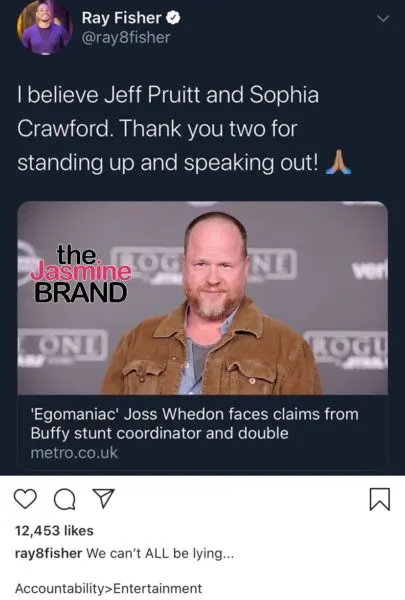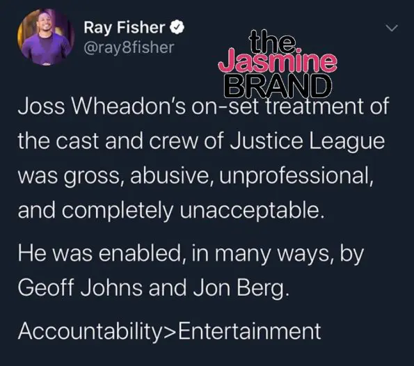 In several recent Instagram posts, Ray Fisher claims that Joss Whedon’s treatment of the cast and crew