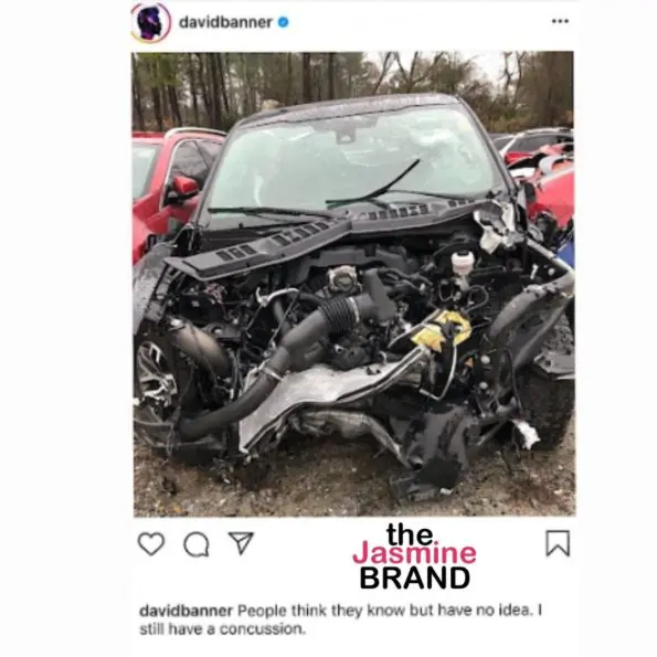 Earlier this week David Banner shared a (now deleted) photo of a totaled car, from the alleged accident that reportedly happened 9 months ago. He posted the photo with the caption,