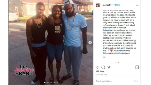 “My brother did 10 years in prison and came to better his life and take care of his sons 3 months after he came home he was a fatal car accident @davidbanner was the driver of tge other he’s complaining that he still has a concussion but what about my brother who lost his life what about his sons who had to grow up without a father what about the pain we have to deal with on a daily base waking up and realizing he’s really gone it wasn’t just a bad dream and not to mention @davidbanner you knew my brother was dead on the scene and you didn’t try to reach out to us and apologize or anything it’s been almost 9 months and still on apology or nun how could you sleep knowing you killed someone and didn’t do anything about but get it covered up #LLJ??? #Justiceforjeremy”