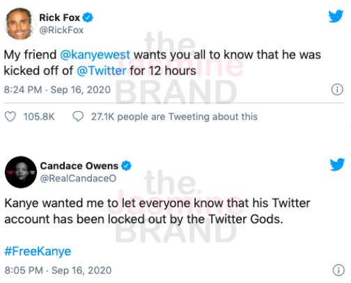 While Kanye West has stayed quiet since his account was reportedly deactivated, two of his famous friends, Rick Fox and Candace Owens, confirmed the news and spread the message on his behalf.