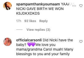 Do you think Nicki’s mom was insinuating the birth of the baby in her post? Let us know below!
