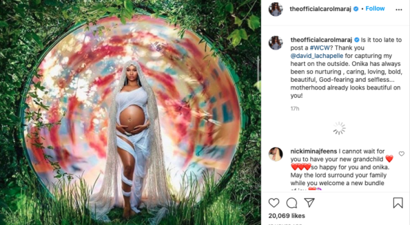 A simple #WCW post has some Nicki Minaj fans sitting on the edge of their seats hoping to receive official news that the rap star has given birth to her baby.