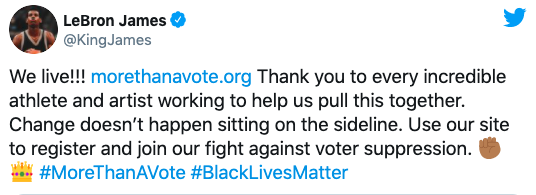“More Than A Vote” will be donating $100,000 to the Florida Rights Restoration Coalition’s fund for residents in Florida. The NBA star has been active on social media, pushing to support Black voters, and even offering opportunities to become a poll worker.