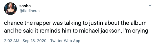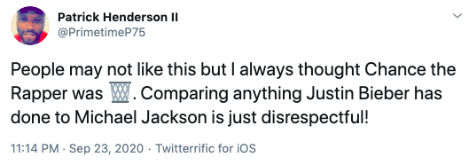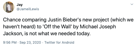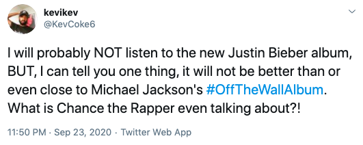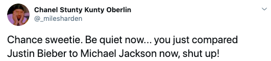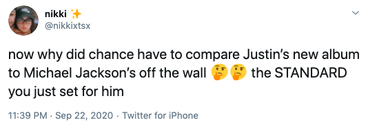 Did chance just compare Justin's JB6 to Michael Jackson's Off The Wall……..?? pic.twitter.com/dNpxZEpozj