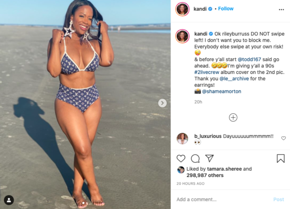 Though Kandi tagged RHOA regular, Shamea Morton, there were no photos present on her page. But interestingly enough, fellow rumored castmate, Drew Sidora’s husband made a comment about his wife living her best life while he was home with the kids.