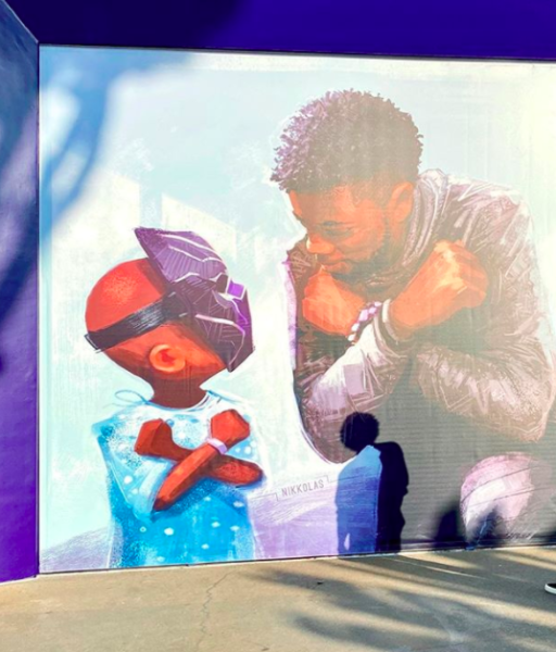 “This one is special. My King Chad tribute is now on a wall on display at Downtown Disney. It is a full circle moment for me: my final two projects as a Disney Imagineer last summer were working on the Children’s Hospital project and the Avengers Campus. To millions of kids, T’Challa was a legend larger than life, and there was no one more worthy to fill those shoes than Chadwick Boseman. I’m so thankful to be able to honor Chadwick’s life and purpose in this way. I am grateful to the Disney family for being so supportive of my journey as an artist.”