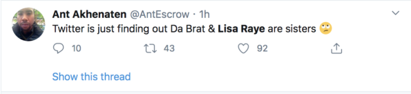 good morning. today i learned that da brat and lisa raye are sisters pic.twitter.com/Te1uOkypCJ