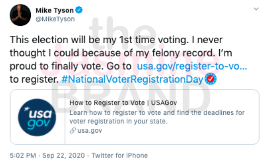 Boxing legend Mike Tyson recently announced his plans in voting for the first time, expressing that he didn’t think he could vote because of his past criminal record. In 1992, he served three years of the six that he was sentenced to after being convicted of one count of rape and two counts of deviant sexual conduct.
