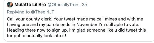 “This election will be my 1st time voting. I never thought I could because of my felony record. I’m proud to finally vote.”