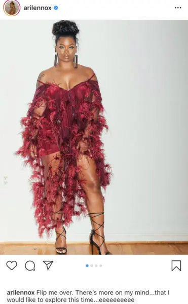 On Saturday, (October 3rd) 29-year-old Ari Lennox posted a picture of her glammed up in a deep red off-the-shoulder dress quoting song lyrics.