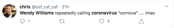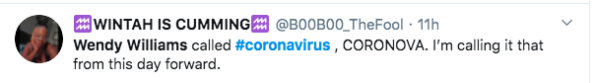 To all the people discovering Wendy Williams’ unique pronunciation of “coronavirus” for the first time, welcome. #Cornova https://t.co/gXfmEhv2tP pic.twitter.com/XCuhvd3TVx