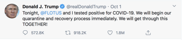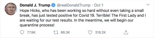 Last week, Donald Trump made the announcement that one of his top advisors, Hope Hicks, was diagnosed with COVID – 19.