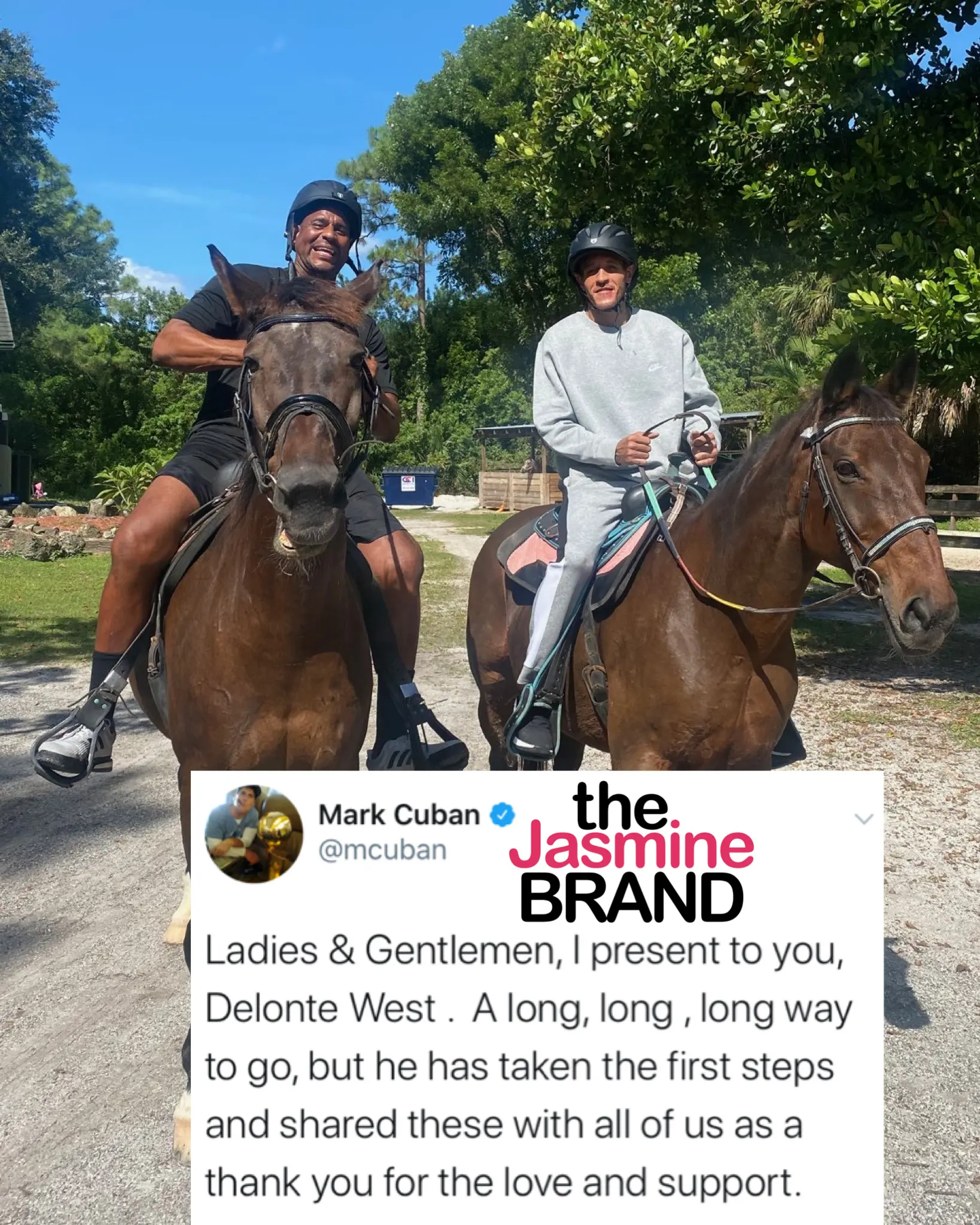 Mark Cuban is giving an update on Delonte West. The Dallas Mavericks owner shared an image of the former NBA star, posing and smiling on a horse. Cuban captioned the image: