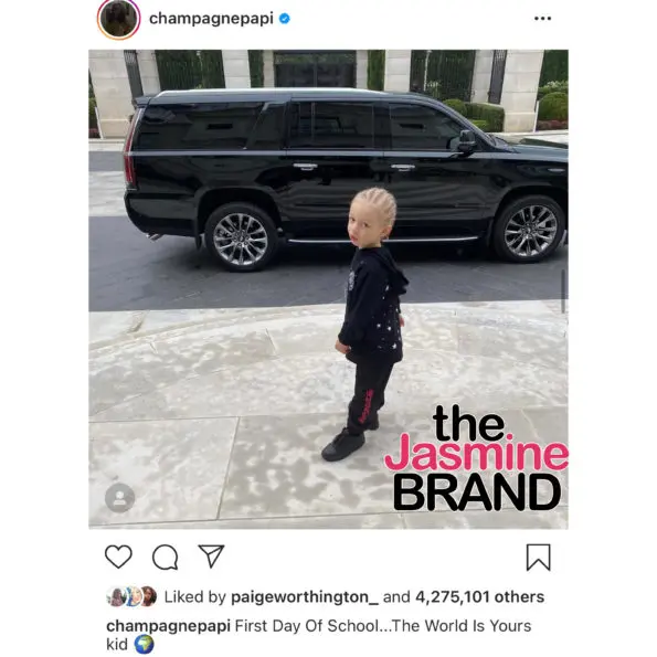 Recently, the pair celebrated the child on his first day of school. Drake shared a picture documenting the journey.