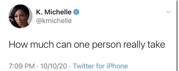 K. Michelle Posts Series Of Tweets Mentions Husband Cheating, Mental Health ‘I Just Can’t Do It Anymore”